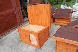 Unsere isolierten Hundehütten halten im Innenraum eine Temperatur, die im Vergleich zur Außentemperatur um 5–12 °C angenehmer ist.