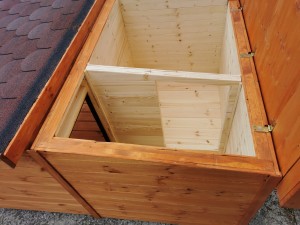 Viele Hundehütten lassen sich nur schwer reinigen – mit dem aufklappbaren Dach ist das jedoch in Sekunden erledigt. Es erleichtert nicht nur die Reinigung, sondern auch die Belüftung und den Zugang im Fall von Welpen.