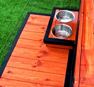 Massiver Holzhalter für Hundenäpfe- und Tränken.